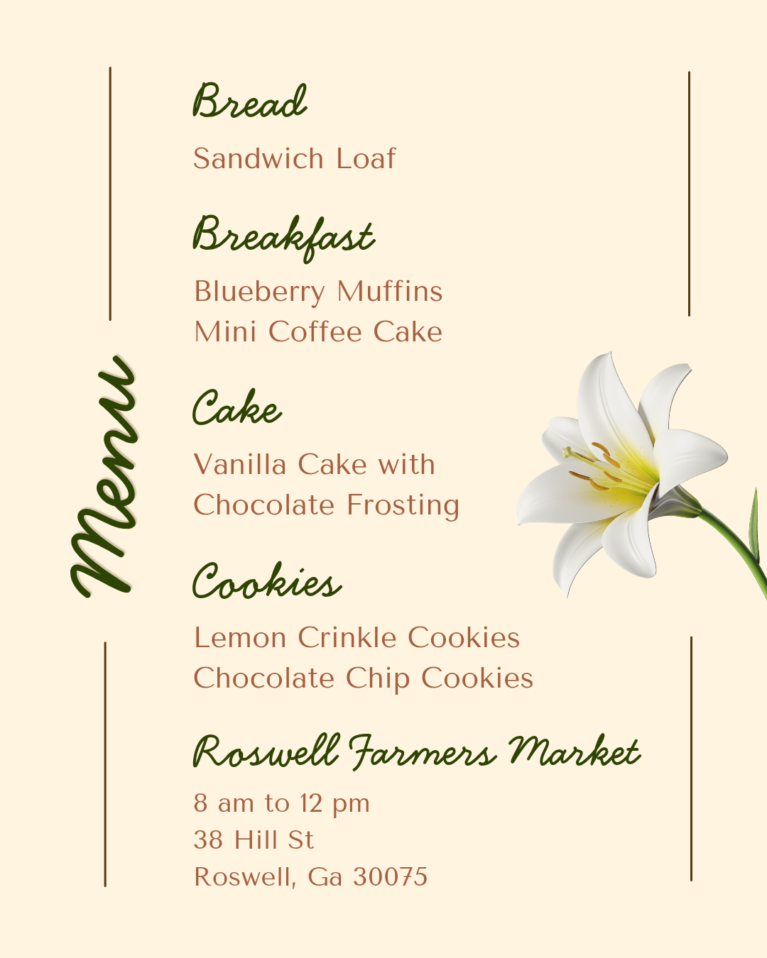 In the event you place a pre-order for one of the markets and you can’t make it (no worries! Life happens), all we ask is that you contact us to re-arrange how we can get you your treats, or cancel your pre-order at least 24 hours in advance of the market.